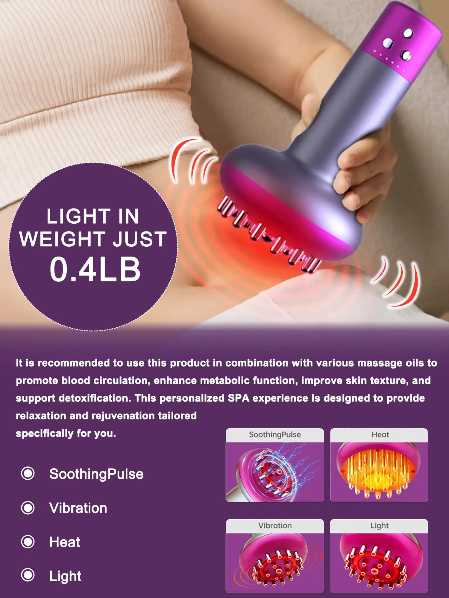 ✅ Microcurrent Stimulation (6 levels) – Relieves deep muscle tension & boosts metabolism