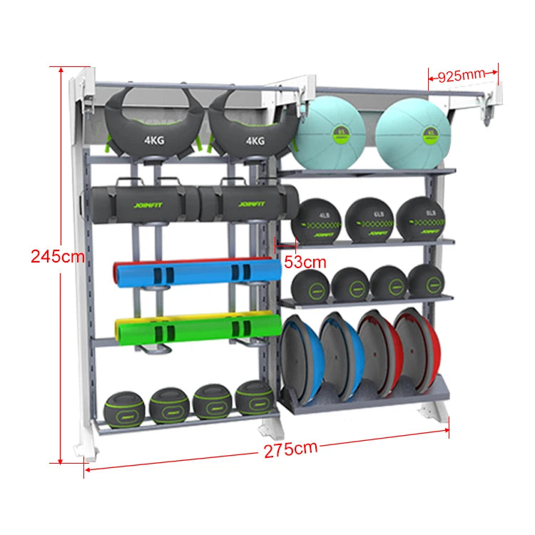 Gym Equipment Accessories Commercial Multi Function Weight Plate Dumbbell Bar Wall Gym Ball Storage Training Gym Rack