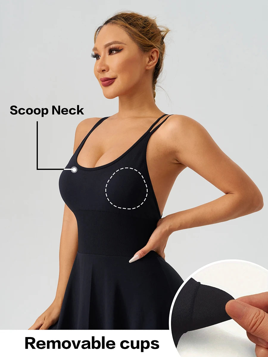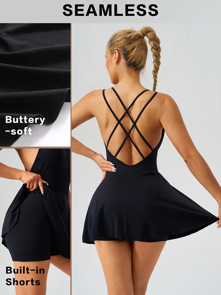 • Seamless Tennis Dress / Sports Skort with Shorts / Backless Workout Dress